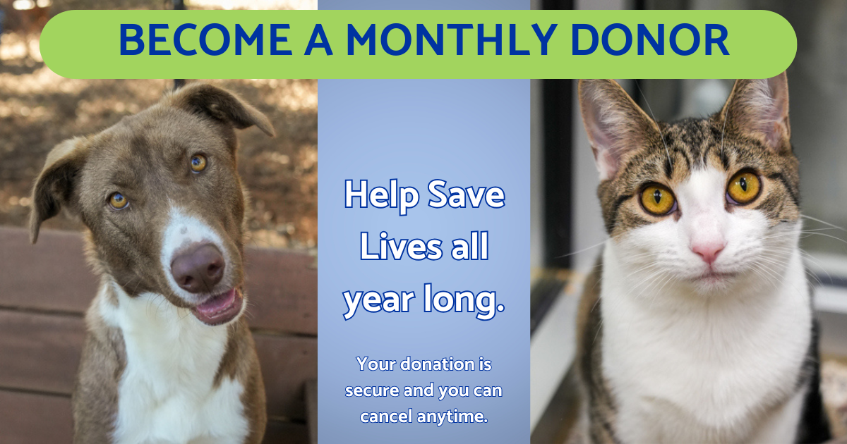 Animals come through our doors every single day; scared, sick, abandoned, or simply out of time. But with your monthly gift, you’re not just helping once. You’re providing ongoing, lifesaving care that our shelter pets can count on all year long.