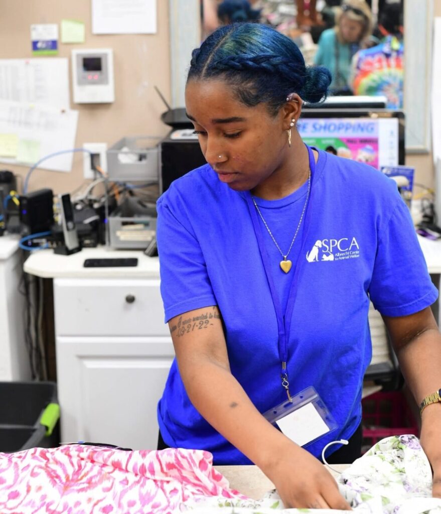 Getting involved as a volunteer at the SPCA Thrift Store is easy and rewarding! Just visit LetLoveLive.org/Volunteer to find information about the program and the volunteer application. Once submitted, we’ll contact you to schedule a volunteer orientation.